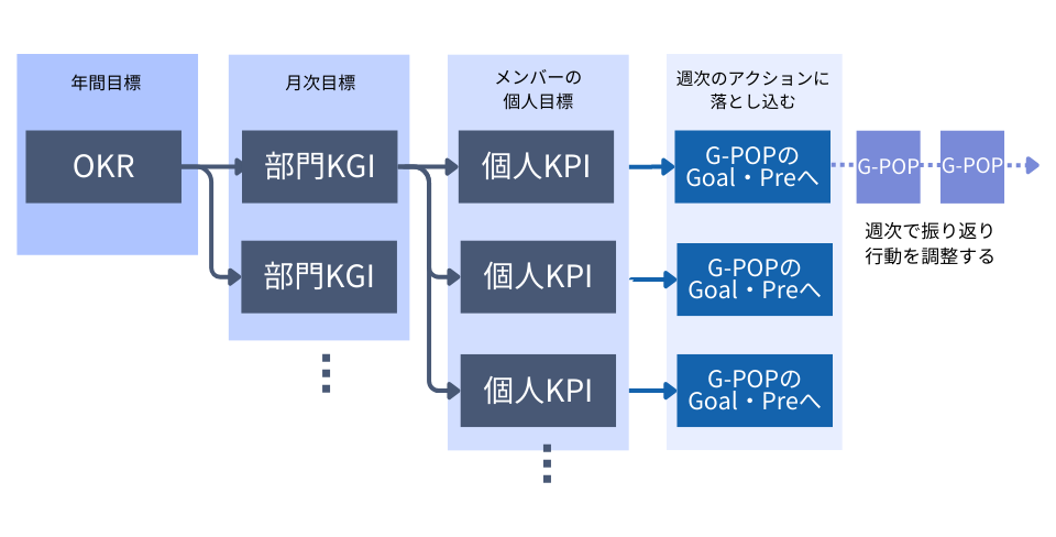 最大の狙いは、「上司が示す『数値目標(KPI)』と、部下の日々の『行動(G-POP)』のズレをなくすこと」にあります。