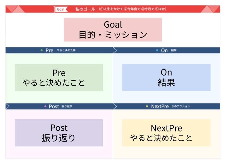 - Post(振り返り):結果を振り返り、次につなげる。