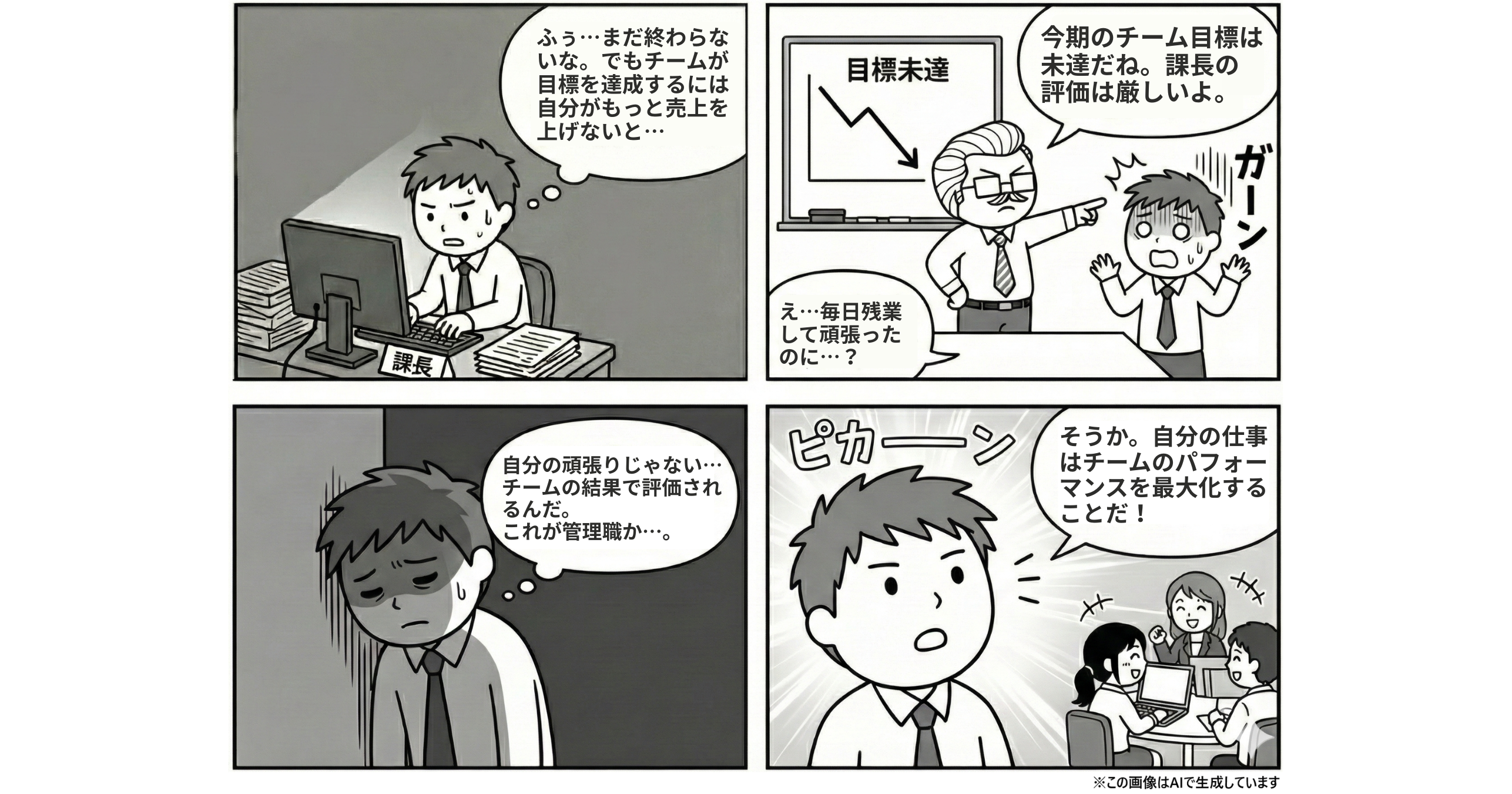 最大の壁は、「自分でやった方が早い」というプレイヤー思考を手放せるかどうかです。管理職の評価軸は「自分がどれだけ頑張ったか」ではなく、「チームを勝たせられたか」に変わります。この変化に適応し、メンバーを支援する側に回れるかが最初のステップです。