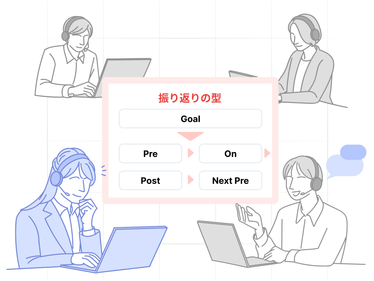 G-POPぐるりでは、個人が業務の振り返りを発表し、メンバーからのフィードバックを基に内省を深めます。このプロセスによって、成功体験の再現性向上、失敗体験の再発防止ができます。