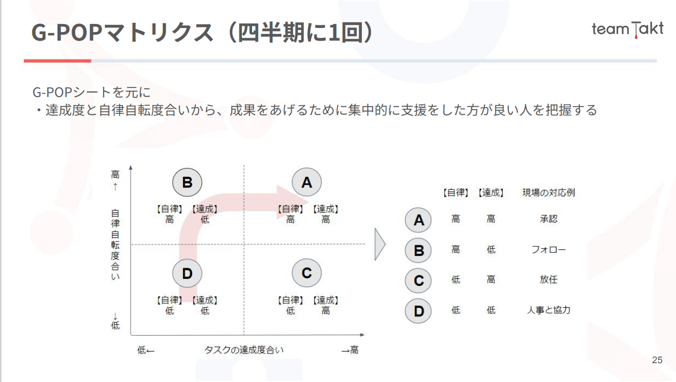 - G-POPマトリクスでフォローが必要なメンバーを特定する