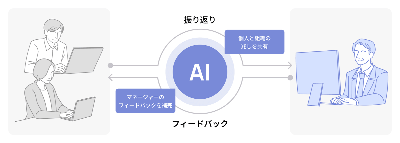 組織全体の振り返り分析では、後述する「兆し発見AI」を活用し、リフリフでの議論を支援します。