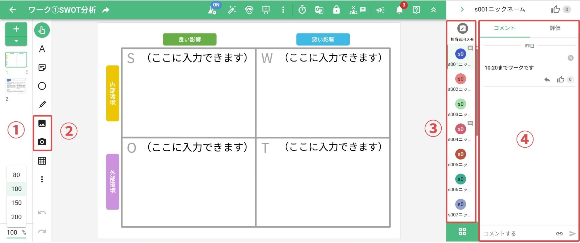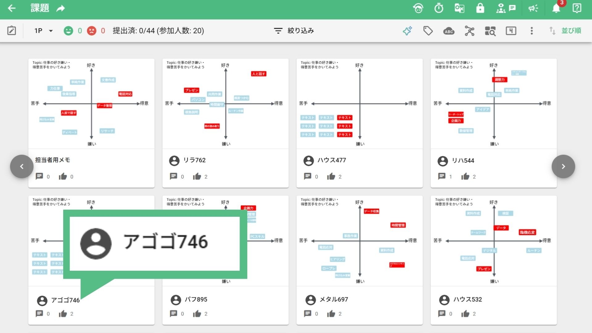 参加者一覧のデザインを変更し、ルームの参加者がプロフィールアイコンで表示されるようになりました。また、アイコンからはワンクリックで該当の参加者画面にスムーズに遷移できるほか、アイコン横に「提出」「コメント」など個々に行ったアクションを示すアイコンも加わり、個々の動きがひと目で把握しやすくなりました。