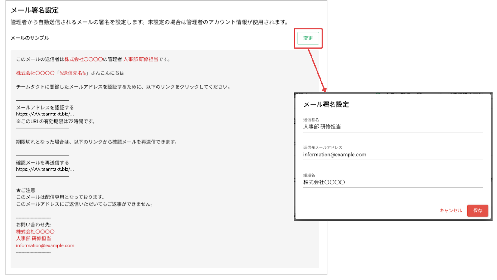 メール関連機能:メール署名設定|チームタクト ヘルプセンター>